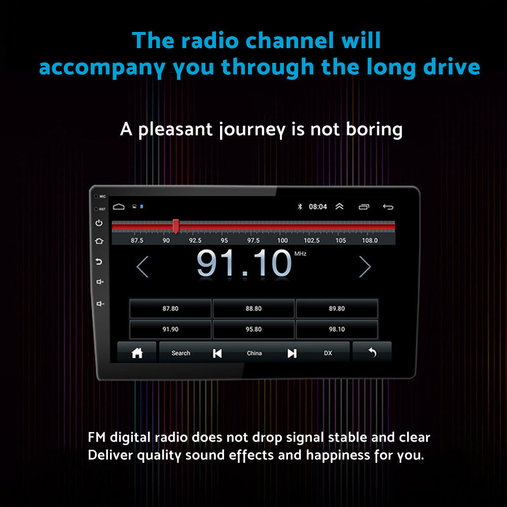 FM Radio: Online music can be transferred via FM to enjoy original car stereo sound, with 18 preset stations.