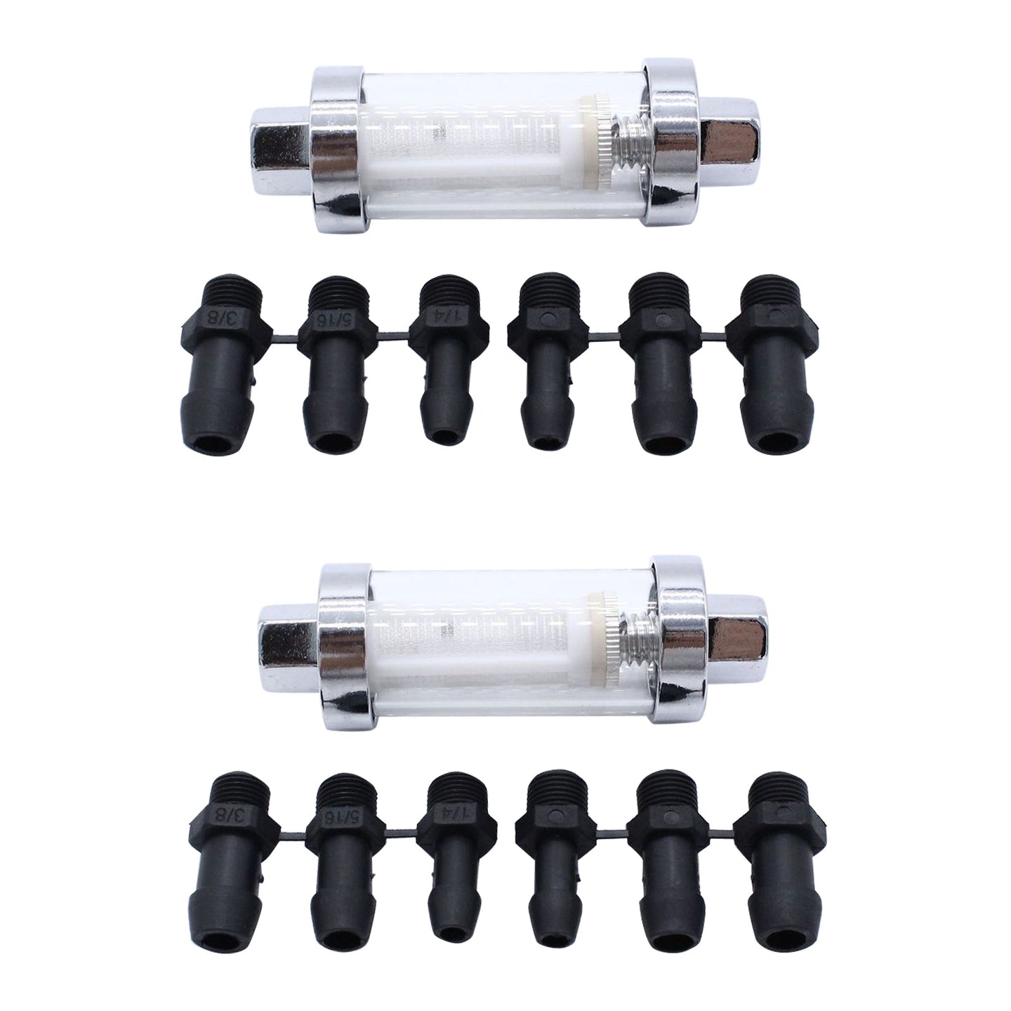 - 2x Reusable Washable Chrome Glass Inline Fuel Filter Suitable For 1/4 Inch, 5/16 Inch & 3/8 Inch Fuel Lines