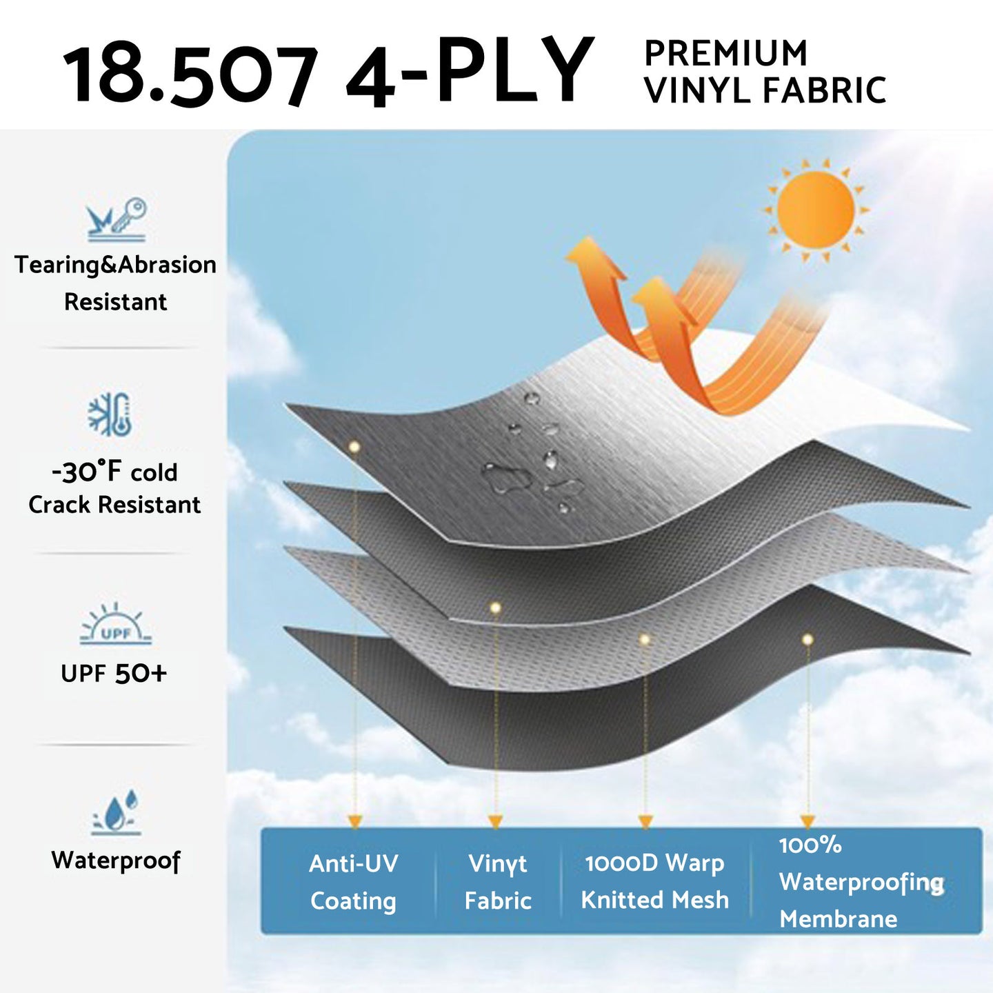 Made of premium 18oz PVC vinyl with strong tear resistance